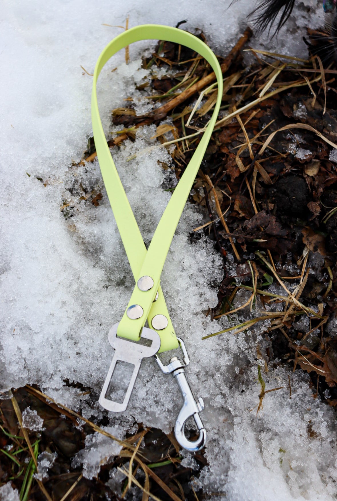 Keywords: Biothane dog seatbelt adapter, dog car safety, waterproof dog travel gear, harness seatbelt attachment, durable dog seatbelt, travel dog leash, handmade in Canada, adventure dog gear